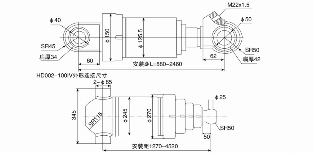 250/220、160/150、100/90:三級(jí)缸,缸徑分別為250、160、100,桿徑分別為220、150、90